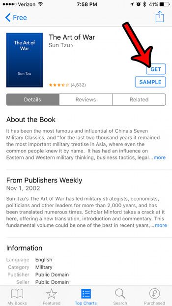 4. Adım: dokununElde etmekİndirmek istediğiniz e -kitabın sağındaki düğme.