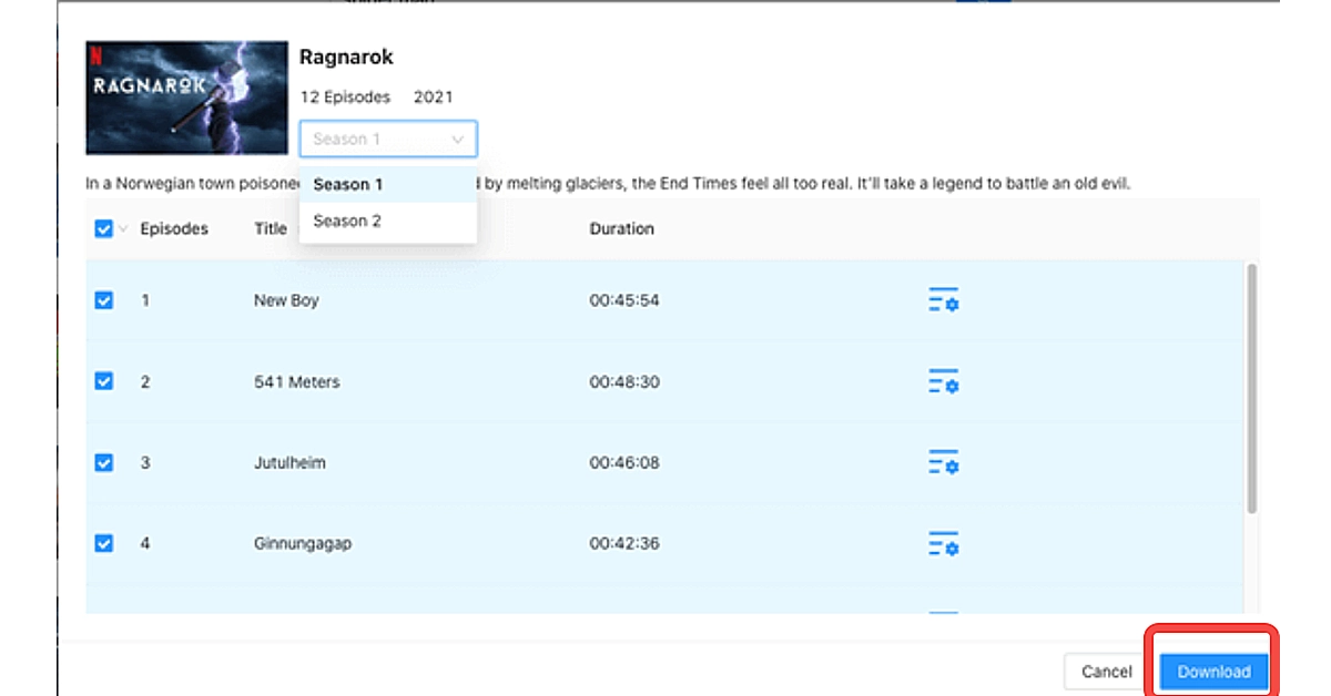 3. Adım:Seçtiğiniz Netflix videolarını indirin. Tek bir film için sağdaki indir düğmesini tıklamanız yeterlidir. TV dizileri veya şovlar için izlemek istediğiniz bölümleri seçin ve Mac'inizde çevrimdışı tutmak için indir düğmesine tıklayın.