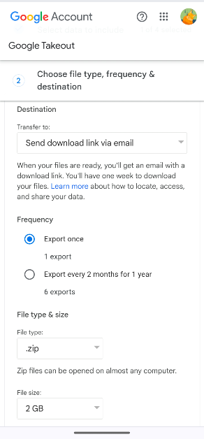 Adım 7:Verilerinizin bir dosyasını oluşturmasını bekleyin. Dışa aktarma hedefiniz olarak bir 'indir bağlantısı' seçtiyseniz,Gmail gelen kutusuve üzerine tıklayınindirmekVerileriniz.
