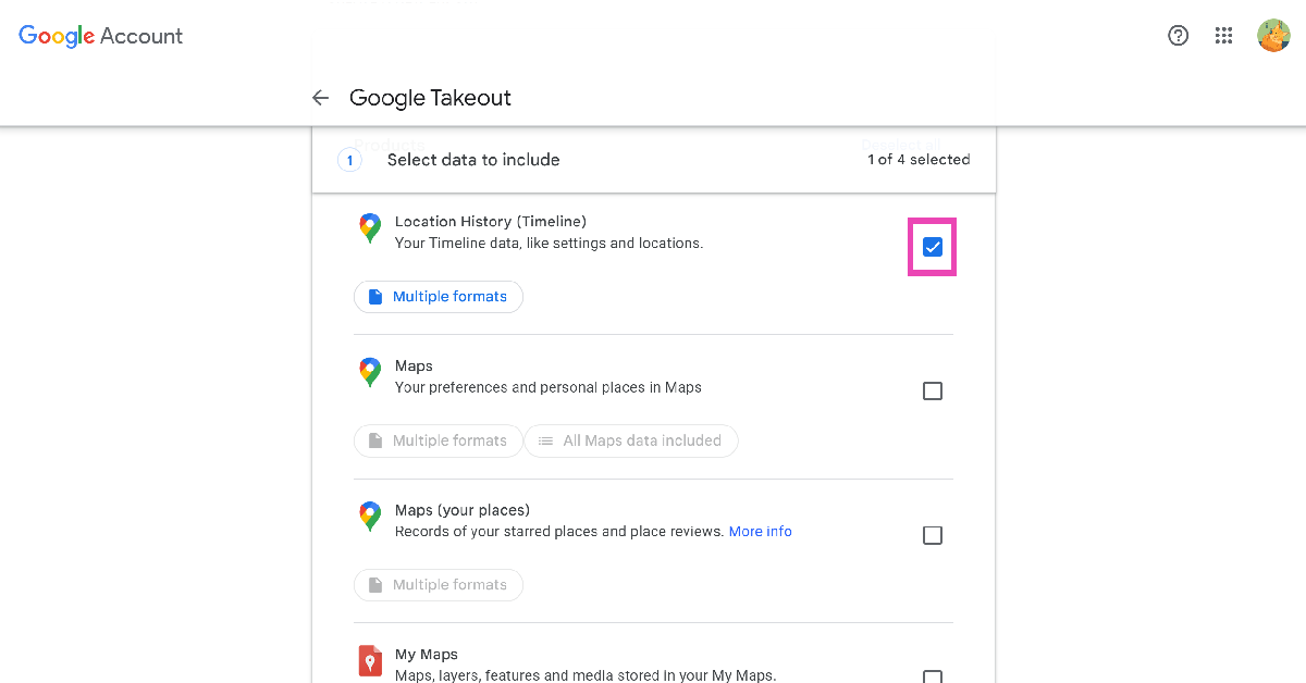 Bu durumda, Google'ın Paketleme Hizmetini kullanabilirsiniz. Google Pacout, kişisel verilerinizi tüm hizmetlerine indirmenizi sağlar. Buna haritalar da dahildir. Dosya boyutunu kontrol altında tutmak için yalnızca zaman çizelgesi verilerinizi indirmeyi seçebilirsiniz. Bunu nasıl yapabileceğinize bir göz atalım.