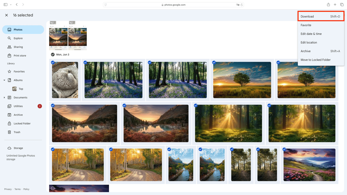 - İndirmek istediğiniz fotoğrafı seçin. (Birden fazla seçmek için bir fotoğraf tutun.)