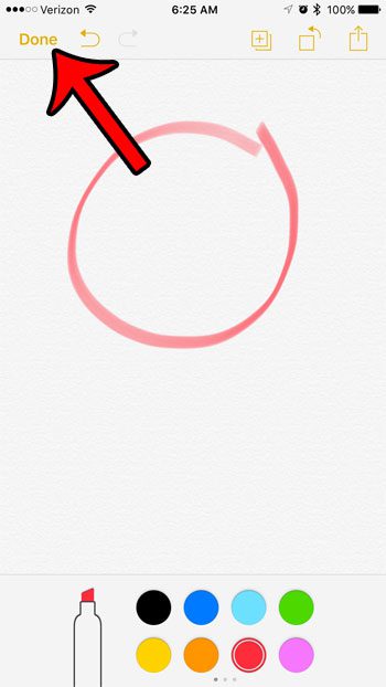 Adım 7: Tuval üzerine çizin. DokunabilirsinTamamlamakÇizimi bitirdiğinizde düğme. Ekranın üstünde, geri almanıza, yeniden yapmanıza, nota ek eskizler eklemenize, tuvali döndürmenize veya notu paylaşmanıza olanak tanıyan düğmeler vardır.