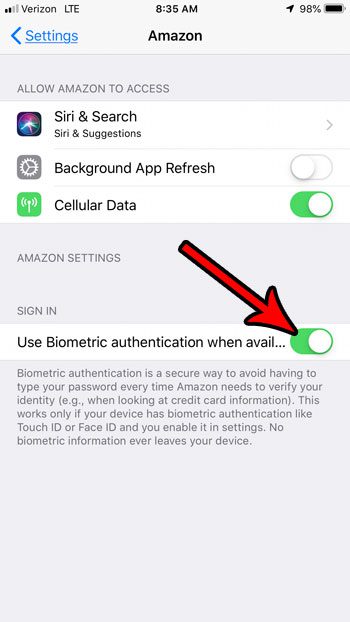 Bu makaledeki adımları tamamlayarak, Amazon uygulamasını kullanırken Amazon uygulamasının Dokunma Kimliğinizi veya Face Kimliğinizi şifrenizin yerine kullanmasına izin vereceksiniz.