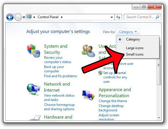 3. Adım: tıklayınGörüşmekPencerenin sağ üst köşesinde seçenek seçin, ardındanKüçük simgelerseçenek.