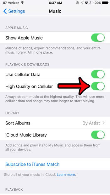 Bu seçeneğin etkinleştirilmesinin, hücresel bir bağlantıdayken akış yapıyorsanız çok daha fazla hücresel veri kullanmanıza neden olabileceğini unutmayın. Ayrıca, yüksek kaliteli akışlar oynamak için daha fazla veri indirilmesi gerektiğinden şarkıların çalmaya başlaması daha uzun sürebilir.