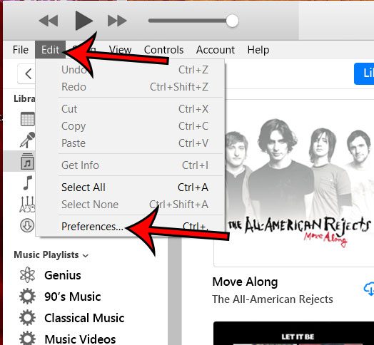 2. Adım: TıklayınDüzenlemekPencerenin üstünde, ardındanTercihlerseçenek.