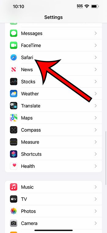 2. Adım: Aşağı kaydırın veSafariseçenek.