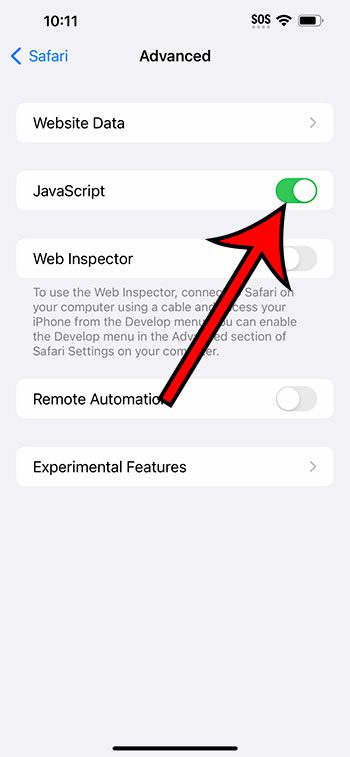 Umarım, iPhone 14'te JavaScript'in nasıl etkinleştirileceğine dair rehberimiz, geçerli ayarı ayarlayarak işlerin iyileşip gelişmediğini görebilmeniz için bu seçeneği bulmanıza ve değiştirmenize yardımcı olmuştur.