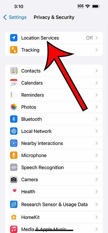 İPhone 14'ünüzdeki konum hizmetlerini etkinleştirebilirsiniz.Ayarlar> Gizlilik ve Güvenlik> Konum Hizmetleri>Sonra bantlamaKonum Hizmetleridüğme.