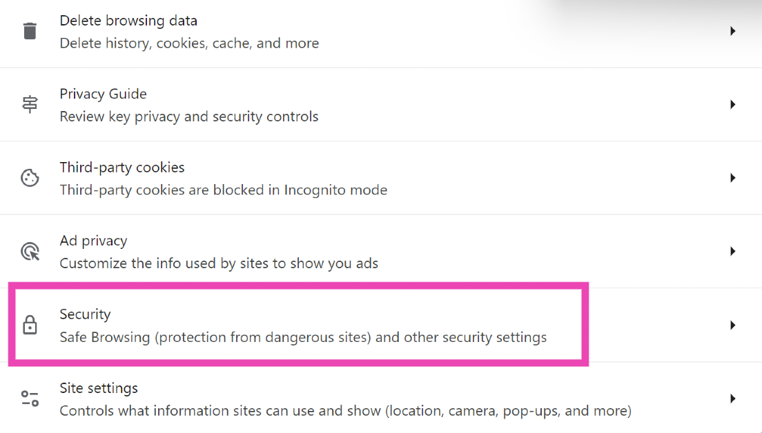 Chrome ayarlarına gidin, seçinGizlilik ve Güvenlik> Güvenlikve 'Güvenli Tarama' altında 'Gelişmiş Koruma' üzerine tıklayın.