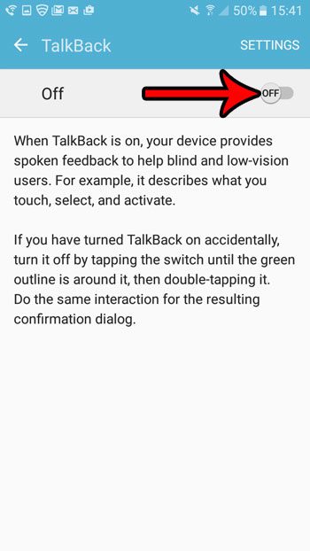 Adım 5: Sağdaki düğmeye dokununKapalıTalkback özelliğini açmak için.