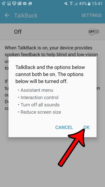 Adım 7: DokunTAMAMCihazınızdaki Talkback ile uyumsuz özellikleri kapatmak için tekrar düğme.