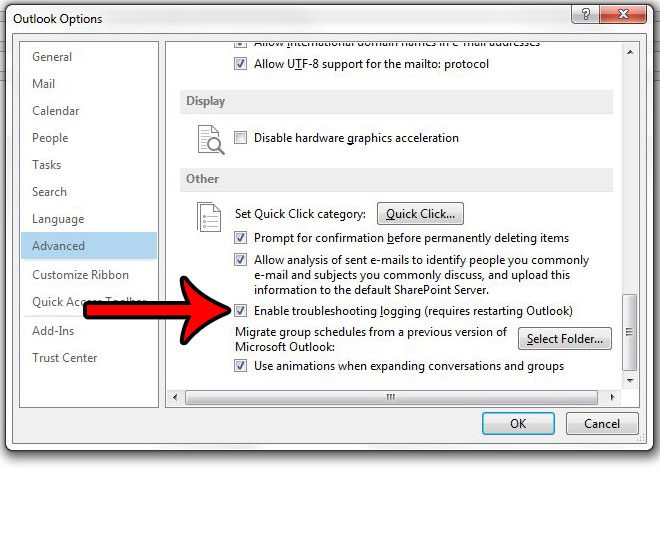 Aşağıdaki kılavuzumuz, bu bilgileri toplamaya başlayabilmeniz için Outlook 2013'te sorun giderme günlüğünü açacak ayarı bulmanıza yardımcı olacaktır.