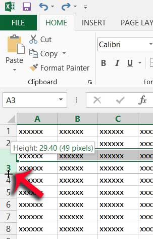 Adım 3: Satır başlığının alt sınırını tıklayın, ardından satır istenen boyutta olana kadar sürükleyin.