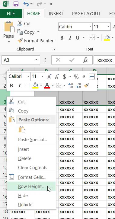 Ayrıca, satır numarasını sağ tıklatarak bir satırın boyutunu sayısal olarak belirleyebilir ve ardındanSatır yüksekliğiseçenek.