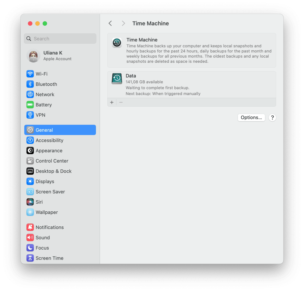 Şimdi, ilk yedeklemeniz, kaç dosyaya sahip olduğunuza bağlı olarak biraz zaman alabilir. Ancak bu adımı atlamayın - yedekleme, MacBook'u fabrika ayarlarına geri yüklediğinizde bir şeyler ters giderse tüm verilerinizi geri yüklemenize izin verecektir.