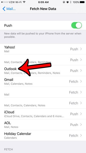 İPhone'unuz, e -postalarınızın adresinize gönderilir gönderilir gönderilir gönderilmez indirildiği veya iPhone'unuzun belirli bir aralıkta yeni mesajları kontrol edeceği Fetch adlı bir seçenek kullanarak, Push adlı bir seçenek kullanarak, gün boyunca periyodik olarak yeni e -posta mesajlarını kontrol edecektir.