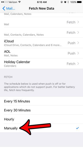 Pil ömrünüzü iyileştirmeye çalıştığınız için e -postanız için getirme ayarını değiştiriyorsanız, iPhone'unuzda pil ömrünü iyileştirmeye yardımcı olabilecek başka bir seçeneği okumak için buraya tıklayın.