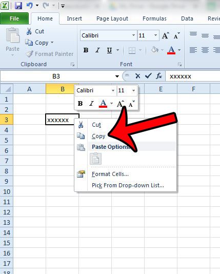 - Adım 1: Değerinizi bir hücreye yazın, ardından hücreyi sağ tıklayın veKopyaseçenek. Alternatif olarak, basabilirsinizCtrl + CHücre değerini kopyalamak için klavyenizde.