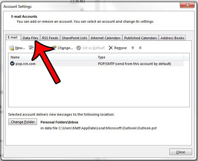Bu kılavuzdaki adımlar, Outlook 2013'te bir e -posta hesabı için tüm e -posta mesajlarını içeren .pst dosyasını nerede bulacağınızı gösterecektir.