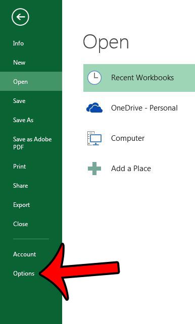 3. Adım: tıklayınSeçeneklerPencerenin sol sütunundaki düğme. Bu açarExcel Seçenekleripencere.