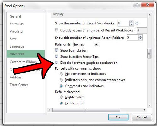 Excel 2013'teki varsayılan ayar, bilgisayarınızın programı hızlandırmak için grafik donanımını kullanmasıdır, ancak bu, ekranınızda dalgalı imleç hareketine neden olabilir.