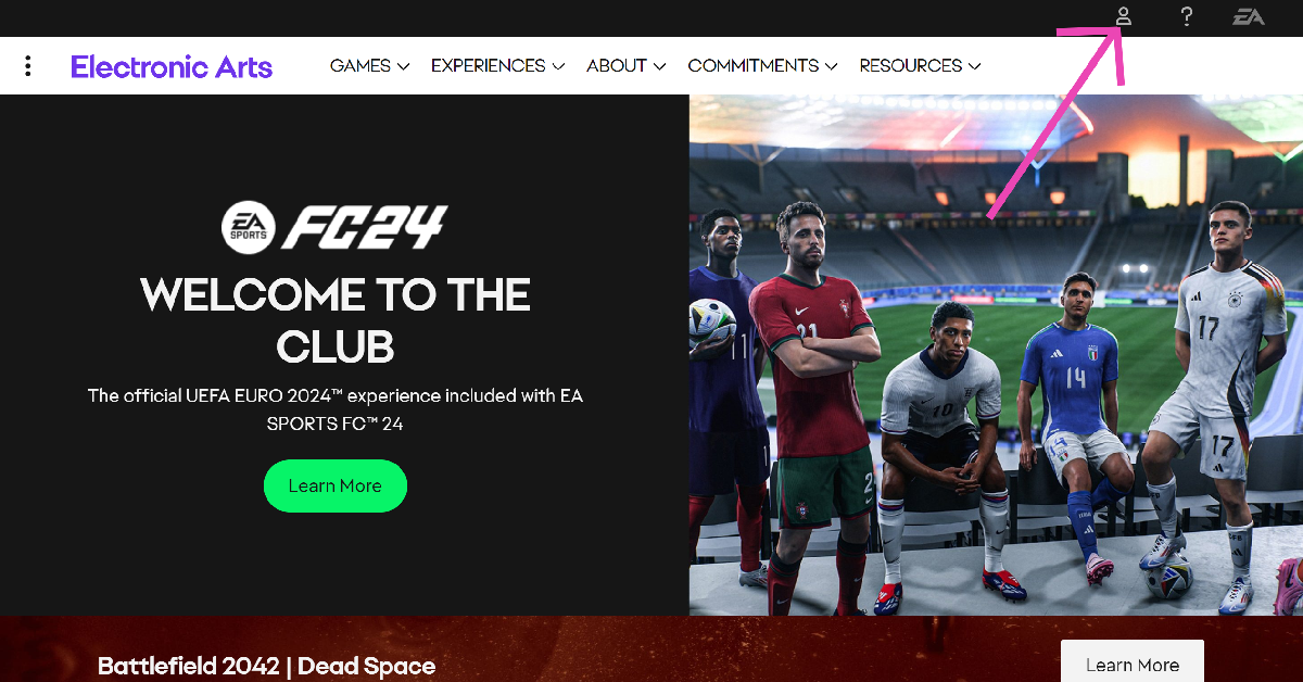 1. Adım:GitResmi EA web sitesiPC'nizde ve vurProfil simgesi.