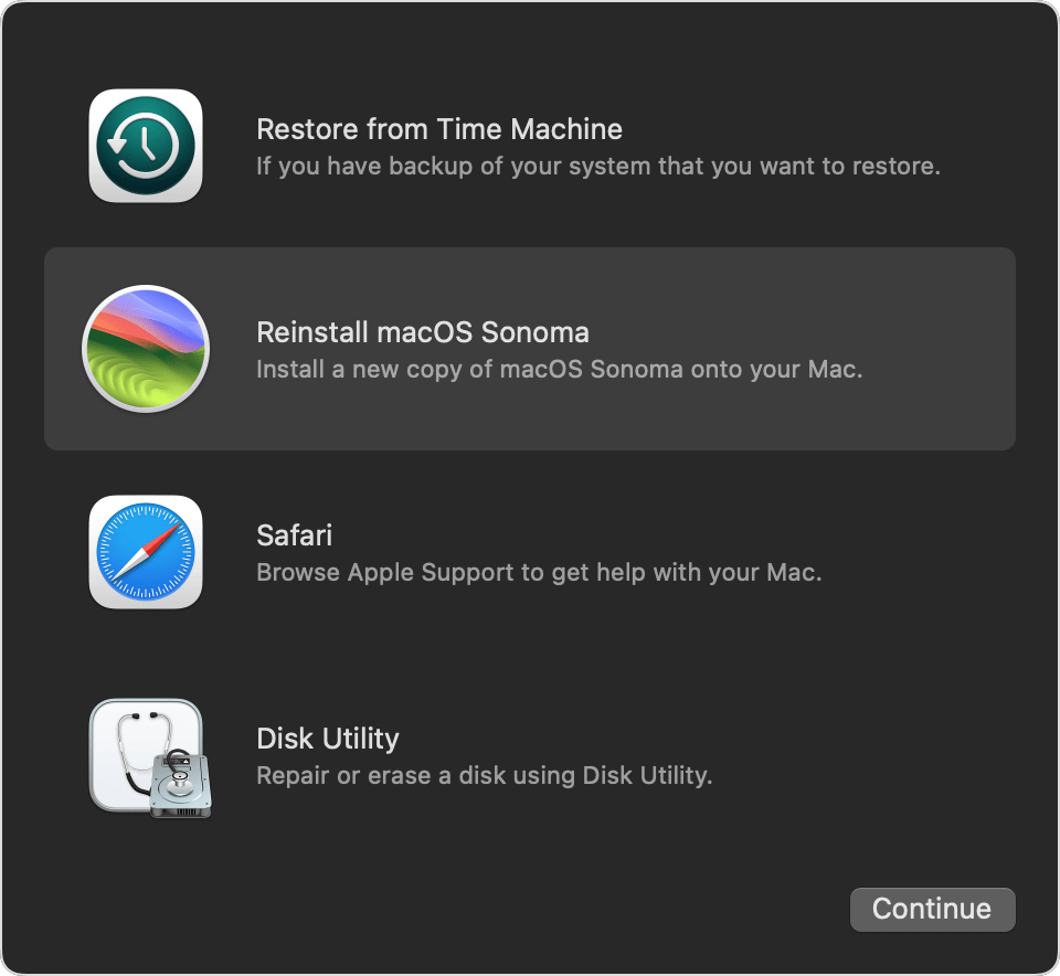 - Başlangıç Seçenekleri penceresi göründüğünde MacOS'u yeniden yüklemeyi seçin.