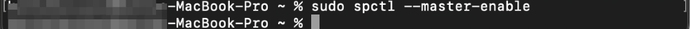 Sudo spctl - -master-disable VurmakGirmek, şifrenizi yazın ve vurGirmekTekrar.