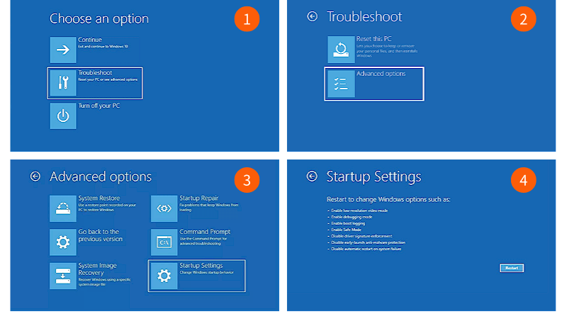 Adım 4: Başlatma Ayarları ekranı göründükten sonra F4 veya 4 tuşuna basın. Güvenli moddayken çevrimiçi olmak istiyorsanız, F5 tuşuna basın.
