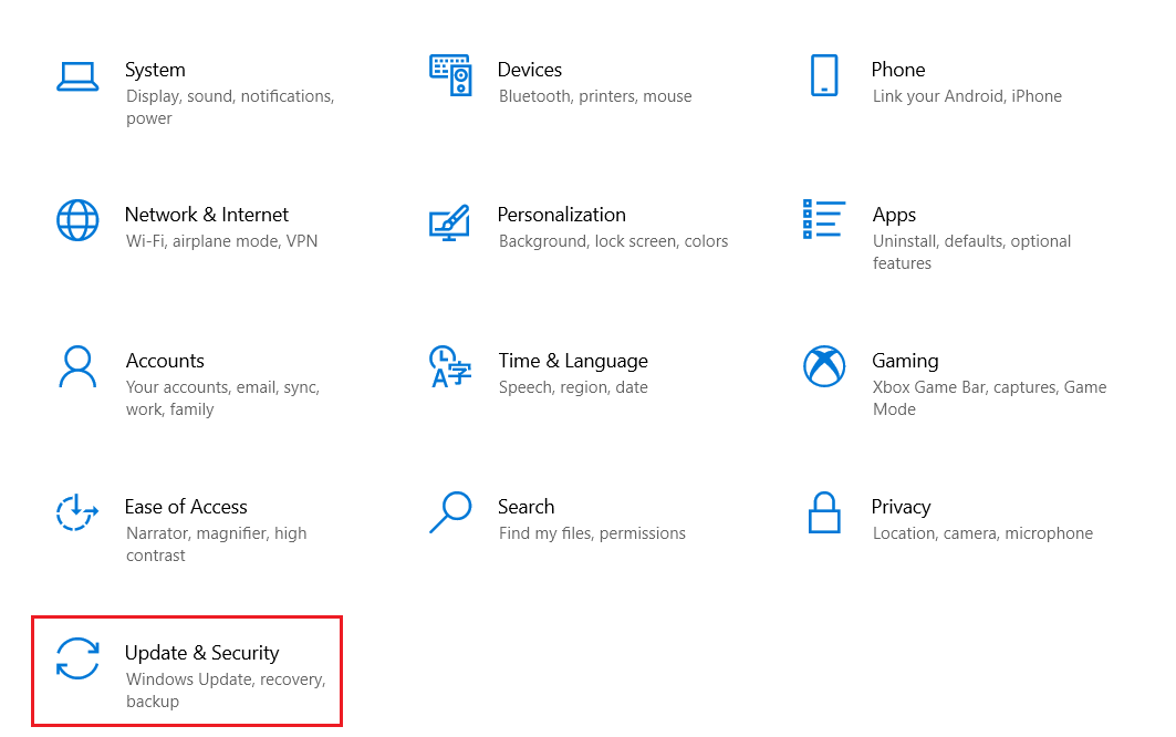 1. Adım:Başlat düğmesini tıklayın. Ayarlar> Güncelleme ve Güvenlik'e gidin.