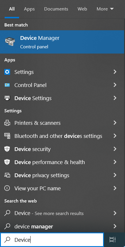 1. Adım:Başlat arama çubuğuna aygıt yöneticisini yazın ve açın.
