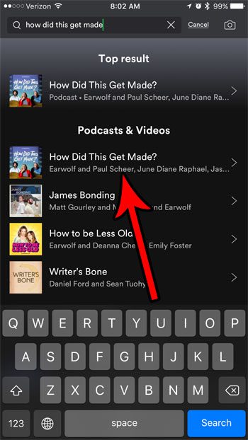 Adım 3: Ekranın üst kısmındaki arama alanında podcast'inizi arayın, ardından arama sonuçlarından doğru seçeneği seçin.