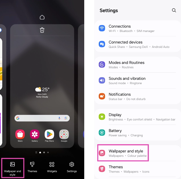 Gidip gelmekAyarlar> Duvar Kağıdı ve Stil> Daha Fazla Duvar Kağıtları> AI Duvar Kağıdı, bir tema seçin, altı çizili kelimelere dokunarak istemi ayarlayın ve 'Duvar Kağıtları Oluştur'a basın.