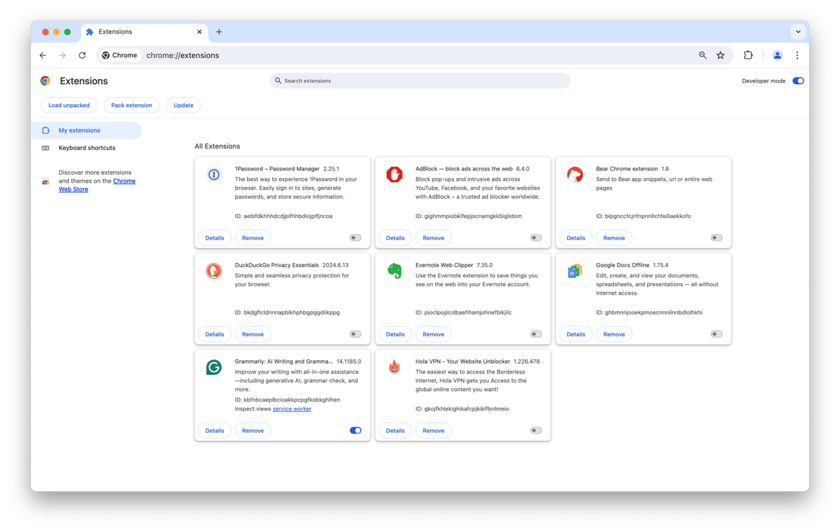 chrome://extensions - Listede tanıdık olmayan uzantıları bulun ve Kaldır'ı tıklayın.