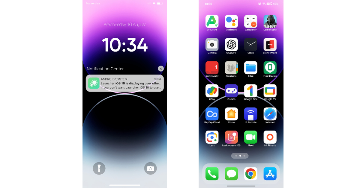 Android cihazınıza bir iOS başlatıcısı yükleyin ve işlev görmesi için gerekli depolama, bildirim ve telefon izinlerini verin. Dinamik ada ve kontrol merkezi için belirli uygulamaları da indirebilirsiniz.