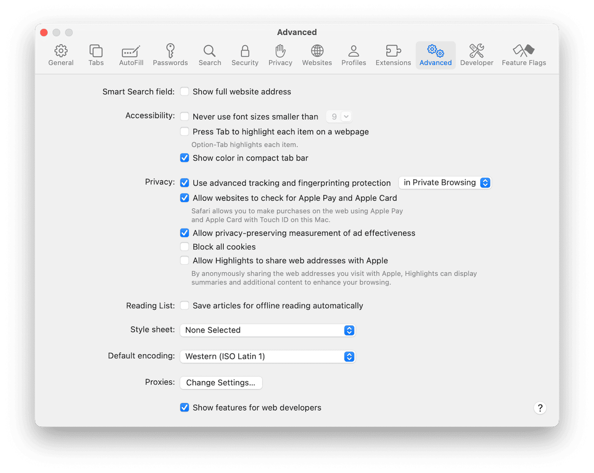 - Web geliştiricileri için şov özelliklerini etiketlenmiş kutuya işaretleyin.