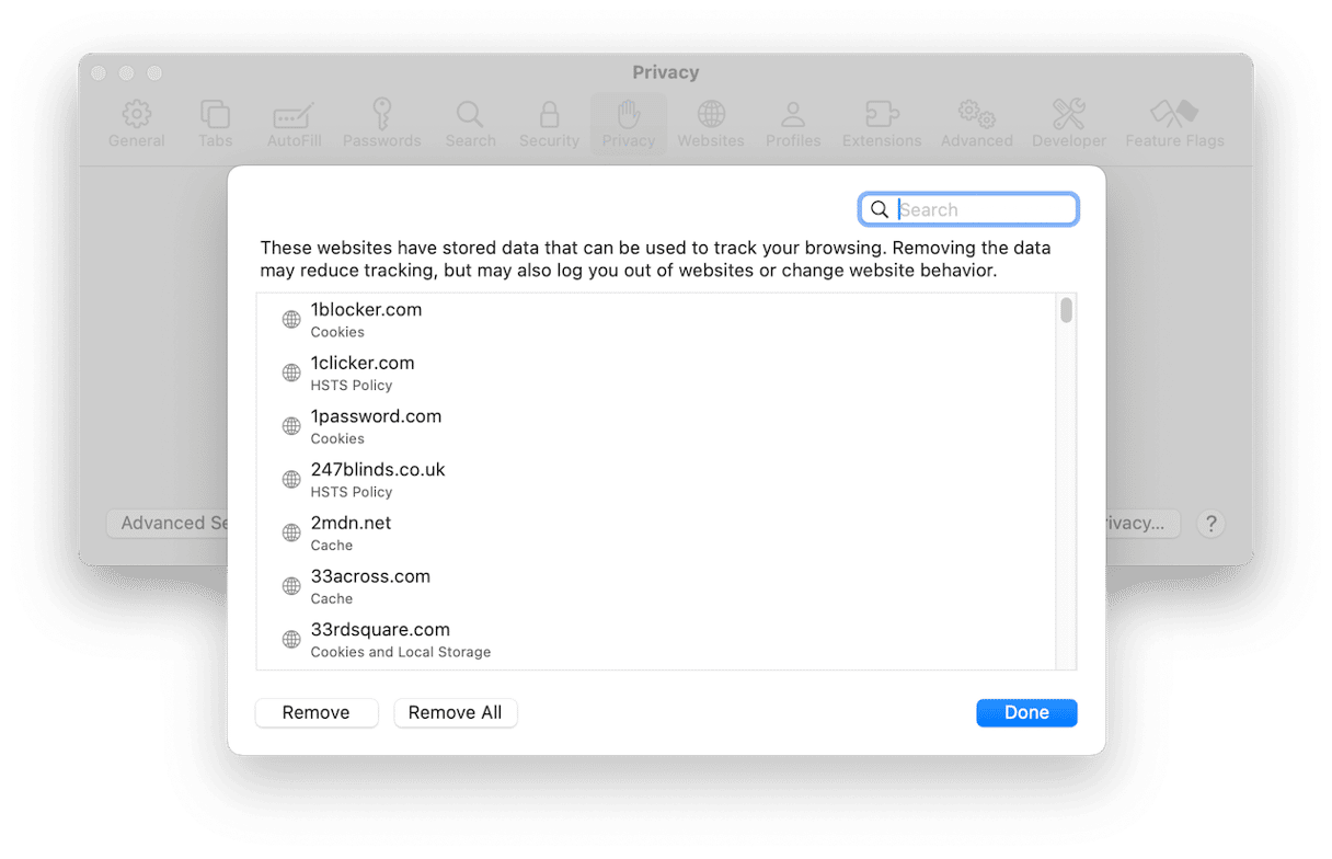 - Kenar çubuğunda Gizlilik ve Güvenlik'i seçin ve çerezlere ve site verilerine aşağı kaydırın.