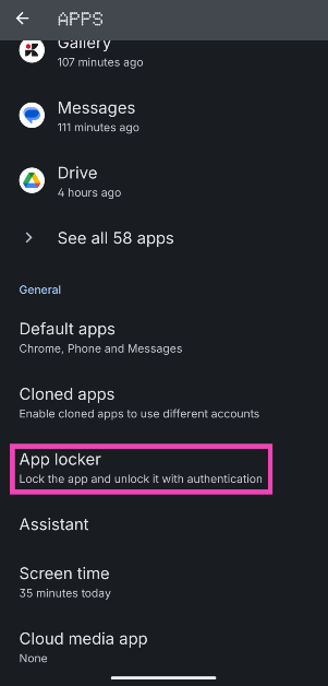 Hiçbir şey telefonunuza bir uygulamayı kilitlediğinizde, parmak izinizi kullanarak erişebilirsiniz. Ancak, APP dolabını ayarlarda kullanırken PIN veya deseni sağlamanız gerekir.