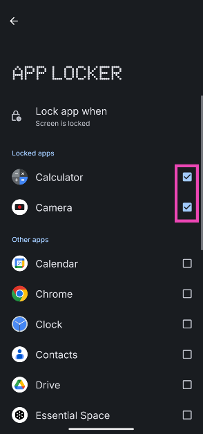 4. Adım:Dokunonay kutularıKilitlemek istediğiniz uygulamaların yanında.