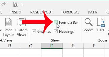 Microsoft Excel 2013 formül çubuğunu tıklayarak gizleyebilirsiniz.GörüşPencerenin üst kısmındaki sekme, ardındanForma çubuğukutu.