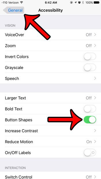 Artık düğme şekilleri seçeneğini etkinleştirerek iPhone'unuzdaki gezinmeyi nasıl geliştireceğinizi bildiğinize göre, menü ekranları arasında geçiş yapabilmeniz için düğmeler bulmanızı kolaylaştırabilirsiniz.