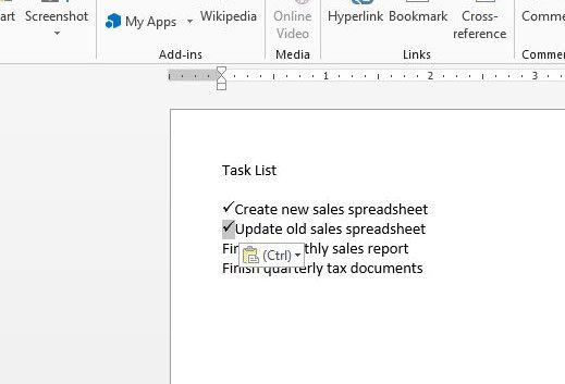 Belgenizde bir onay işareti seçebileceğinizi ve başka bir metni kopyalayıp yapıştıracağınız şekilde kopyalayıp yapıştırabileceğinizi unutmayın.