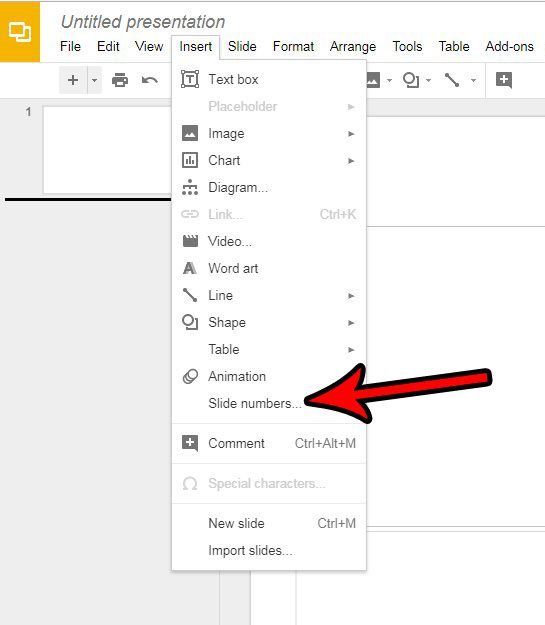 3. Adım: seçinSlayt NumaralarıMenünün altına yakın öğe.