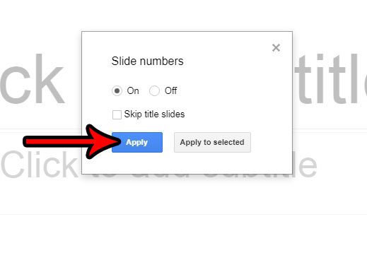 Adım 4: Slayt numaralarını başlık slaytlarına eklemek isteyip istemediğinizi seçin, ardından maviyi tıklayınUyguladüğme.
