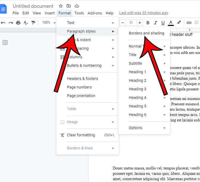 4. Adım: SeçinParagraf stilleri, Daha sonraSınırlar ve gölgeleme.
