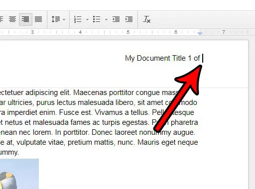 Adım 2: Başlığın içine tıklayın, ardından imlecinizi sayfa sayımını eklemek istediğiniz noktaya yerleştirin.
