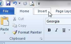 İmlecinizi belgeye yerleştirin3. Adım: tıklayınSokmakPencerenin üst kısmındaki sekme.