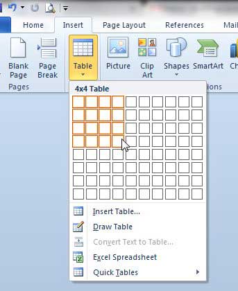 Word 2010'da bir tablo oluşturmak