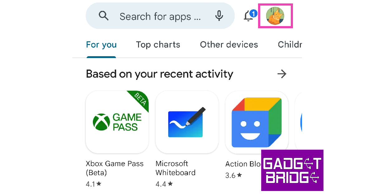 2. Adım:Hedef cihazda Play Protect'i devre dışı bırakın. Bunu yapmak için, hedef cihazdaki Google Play mağazasını başlatın ve ekranın sağ üst köşesindeki profil simgesine dokunun.